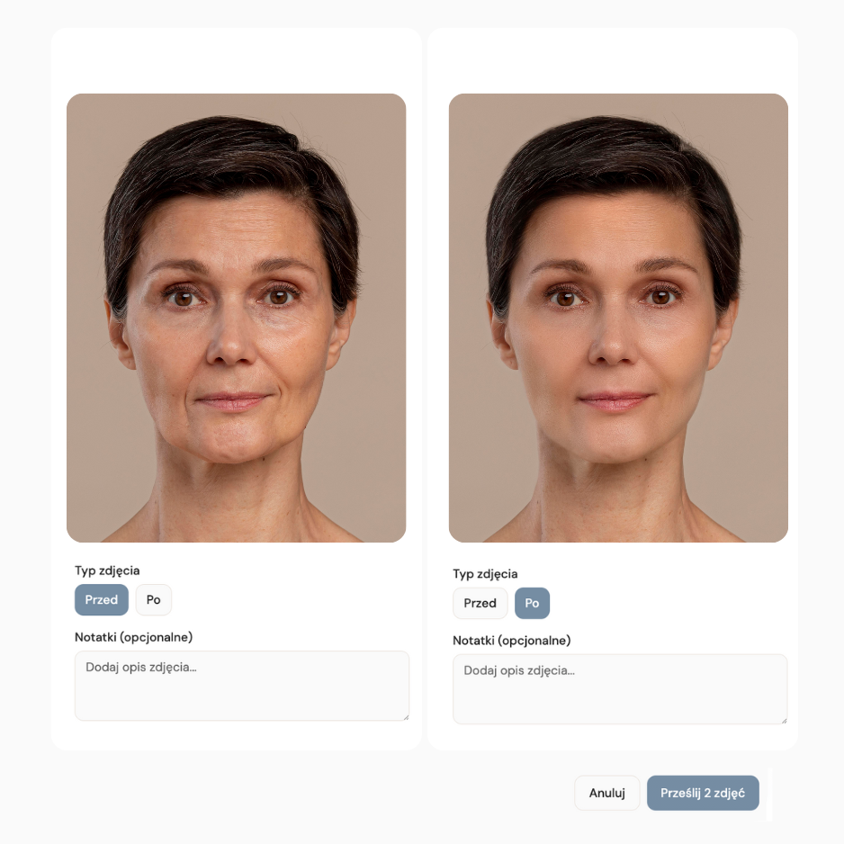 - Zachowaj naturalną mimikę klientki – to pozwala na rzetelne porównanie.